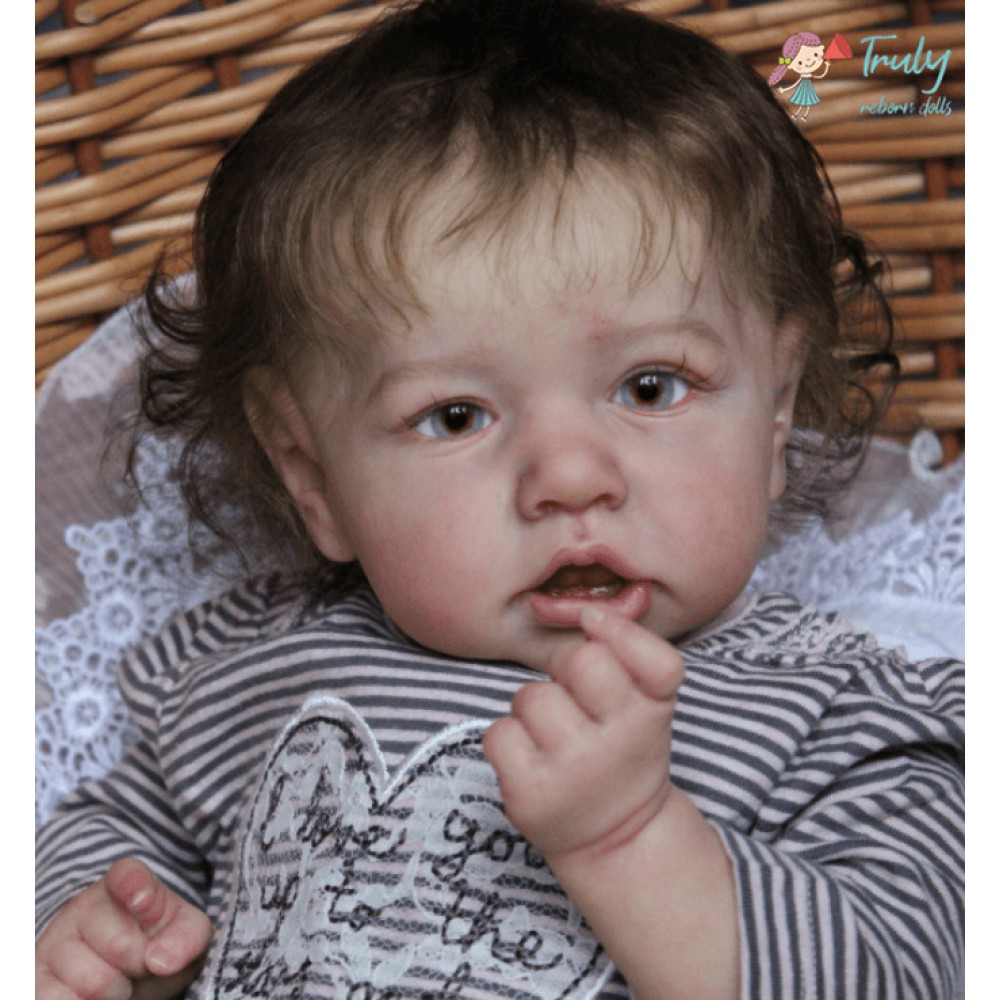 Realistic Saskia is 12'' Long and is made of authentic silicone vinyl, she has the sweetest disposition and a little trouble maker at times. Saskia will come to your home with all the love and affection you want, Holding her is such a joy.. She is weighted and feels like a real baby. I use only the best reborn supplies,making your reborn very realistic.