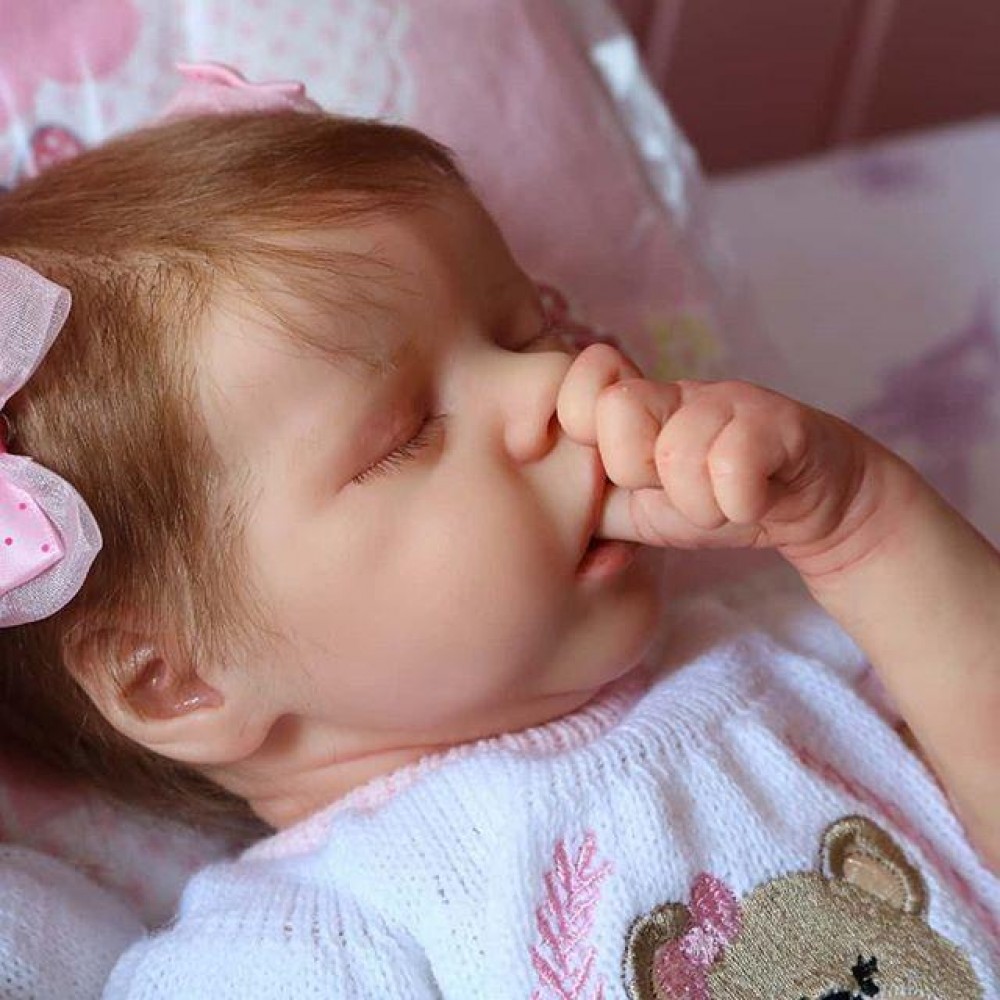 Baby Twin A is lovingly created from the Bountiful Baby Sculpt. A Realborn is a vinyl sculpt created by 3-D scanning a real newborn child, to capture every wrinkle.Twin A is weighted with fine glass beads and stuffed with soft cuddly poly fiber.She is weighted within her head to need support like a real newborn.She feels so good in your arms, just give her a cuddle. She tight closed fists are so newborn!