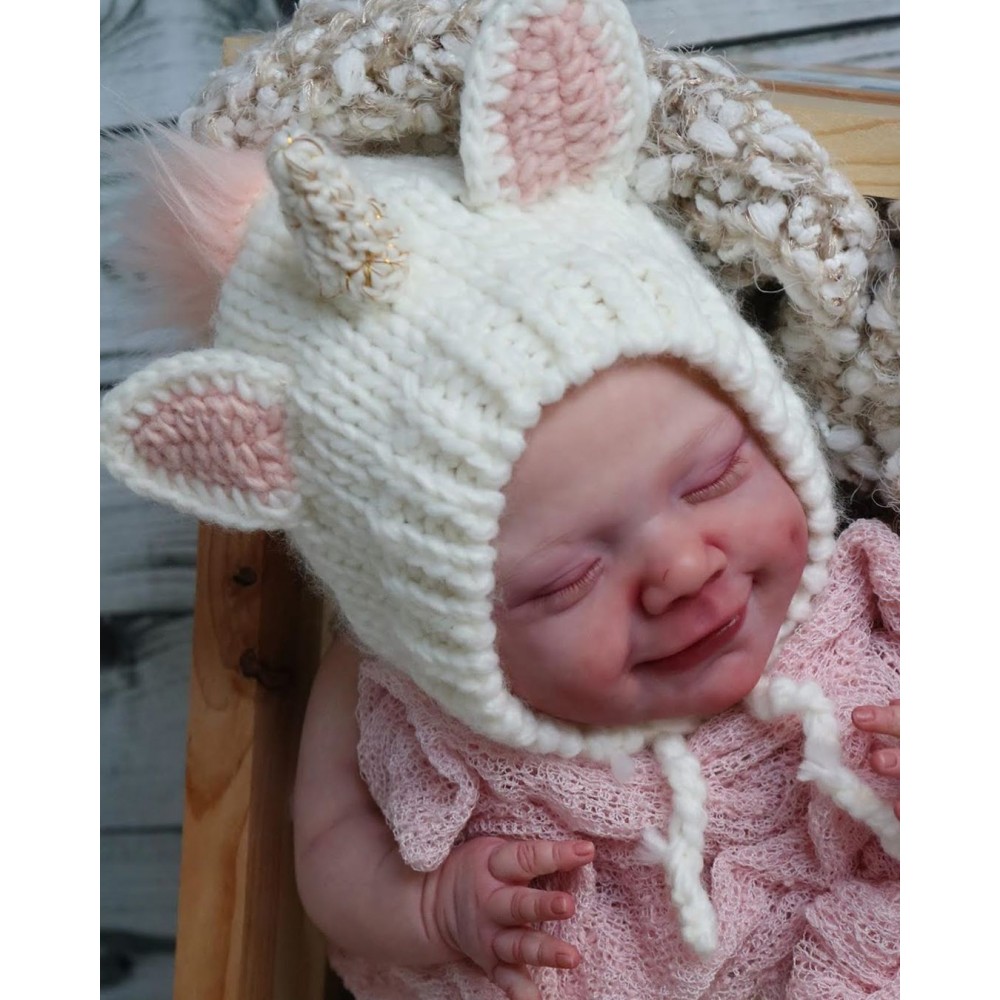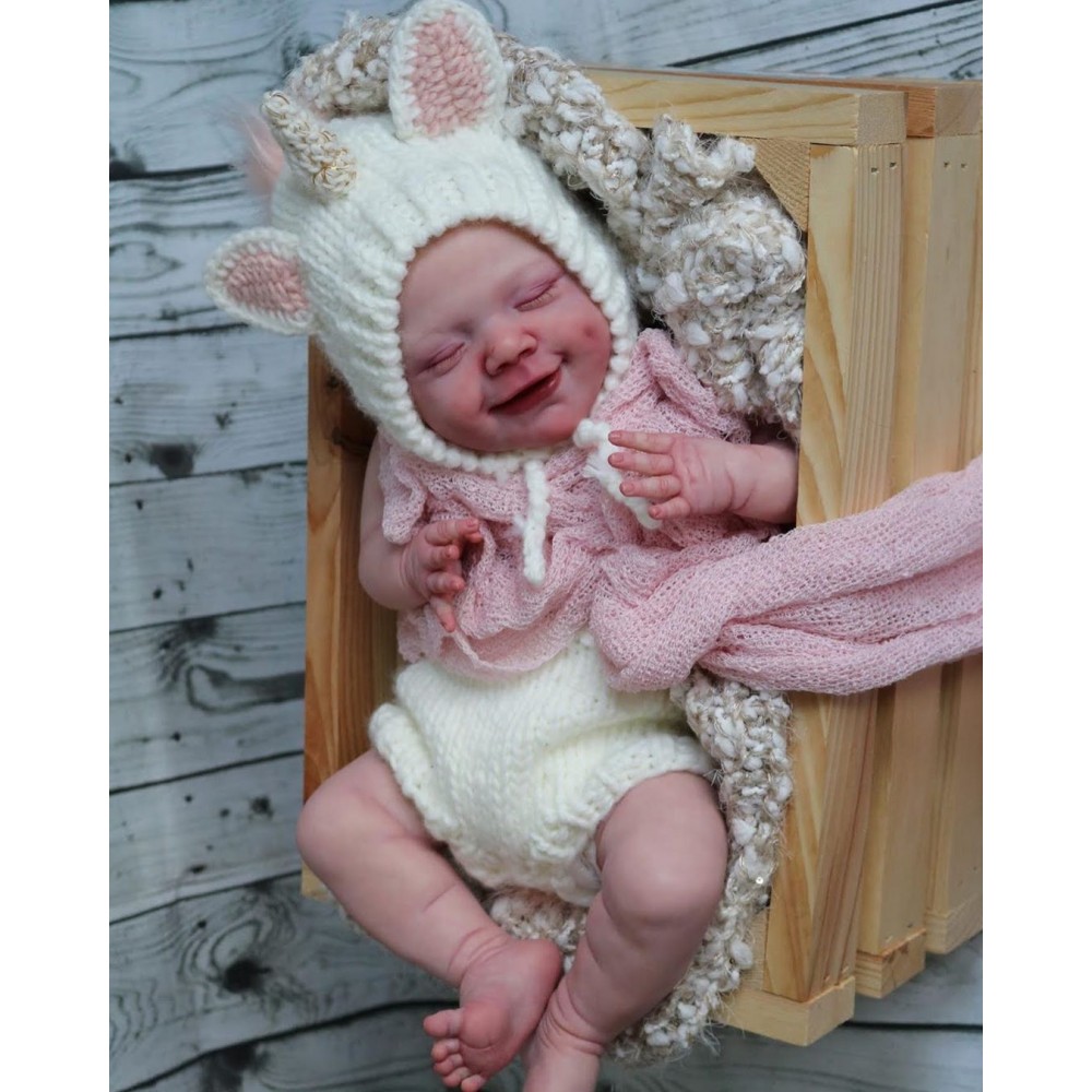 April falls asleep in the comfort of your arms. Her soft body is wrapped in soft and comfortable clothes, and she enjoys the sweet world of her dreams. She is absorbed in her beautiful dream, with a smile as sweet as a picture, and it's the manifestation of a child's first hopes for the world. April's body is soft, her legs are curled up, her nose and cheeks are a little blushed, we haven't forgotten these little details, and the smell of baby talcum powder around her makes everything more realistic. April, born in spring with sweet dreams, is our little smiling angel.