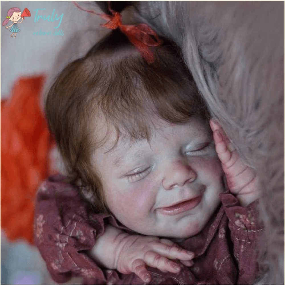 April falls asleep in the comfort of your arms. Her soft body is wrapped in soft and comfortable clothes, and she enjoys the sweet world of her dreams. She is absorbed in her beautiful dream, with a smile as sweet as a picture, and it's the manifestation of a child's first hopes for the world. April's body is soft, her legs are curled up, her nose and cheeks are a little blushed, we haven't forgotten these little details, and the smell of baby talcum powder around her makes everything more realistic. April, born in spring with sweet dreams, is our little smiling angel.