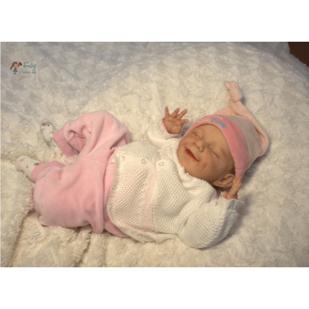 April falls asleep in the comfort of your arms. Her soft body is wrapped in soft and comfortable clothes, and she enjoys the sweet world of her dreams. She is absorbed in her beautiful dream, with a smile as sweet as a picture, and it's the manifestation of a child's first hopes for the world. April's body is soft, her legs are curled up, her nose and cheeks are a little blushed, we haven't forgotten these little details, and the smell of baby talcum powder around her makes everything more realistic. April, born in spring with sweet dreams, is our little smiling angel.