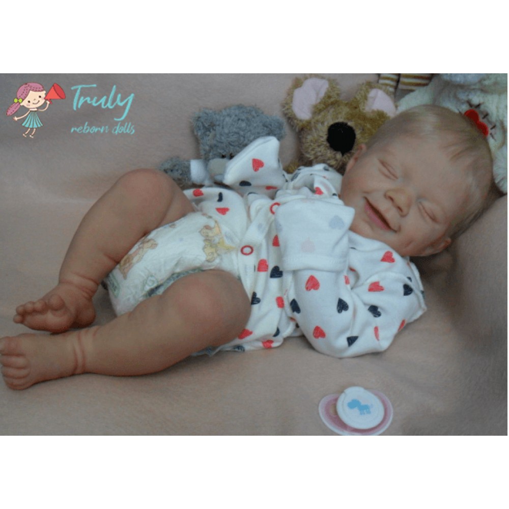 April falls asleep in the comfort of your arms. Her soft body is wrapped in soft and comfortable clothes, and she enjoys the sweet world of her dreams. She is absorbed in her beautiful dream, with a smile as sweet as a picture, and it's the manifestation of a child's first hopes for the world. April's body is soft, her legs are curled up, her nose and cheeks are a little blushed, we haven't forgotten these little details, and the smell of baby talcum powder around her makes everything more realistic. April, born in spring with sweet dreams, is our little smiling angel.