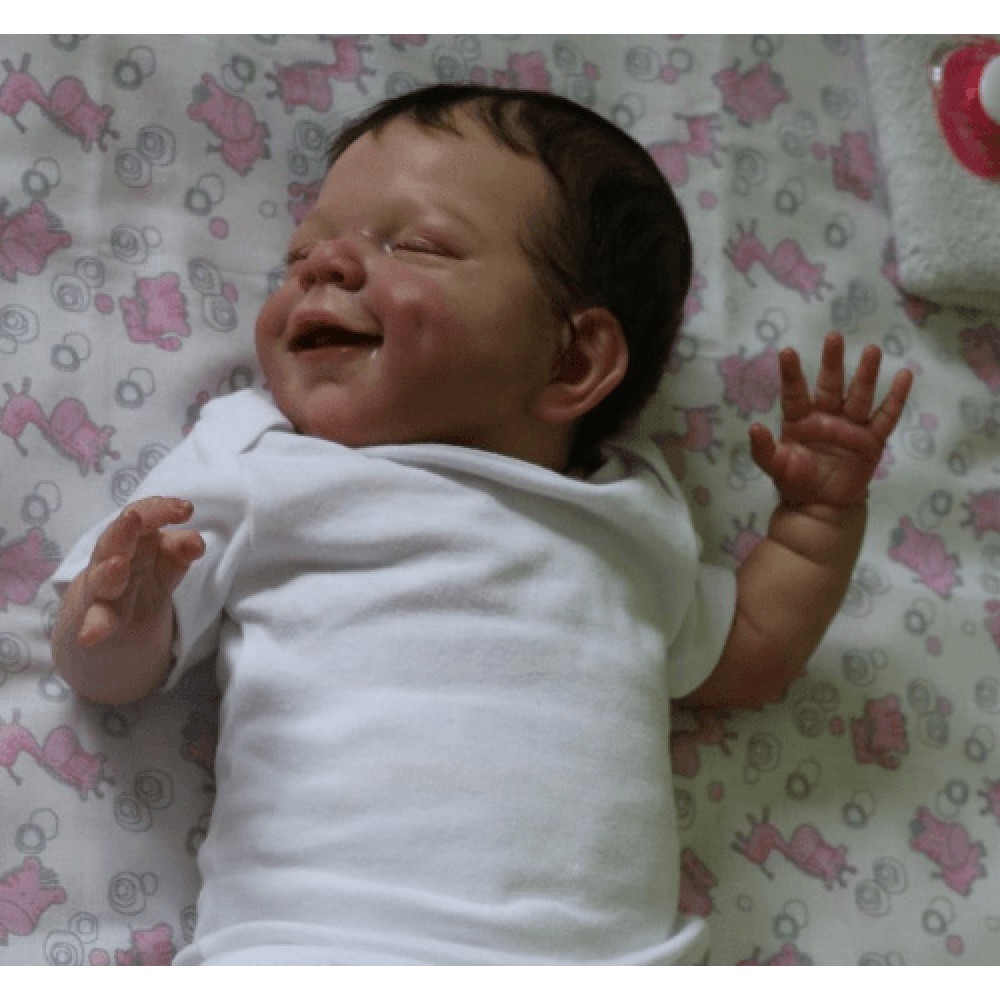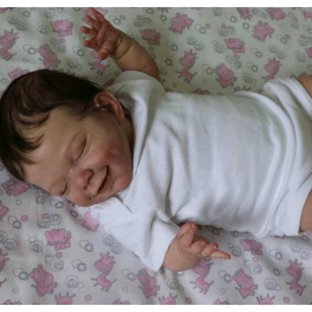 April falls asleep in the comfort of your arms. Her soft body is wrapped in soft and comfortable clothes, and she enjoys the sweet world of her dreams. She is absorbed in her beautiful dream, with a smile as sweet as a picture, and it's the manifestation of a child's first hopes for the world. April's body is soft, her legs are curled up, her nose and cheeks are a little blushed, we haven't forgotten these little details, and the smell of baby talcum powder around her makes everything more realistic. April, born in spring with sweet dreams, is our little smiling angel.