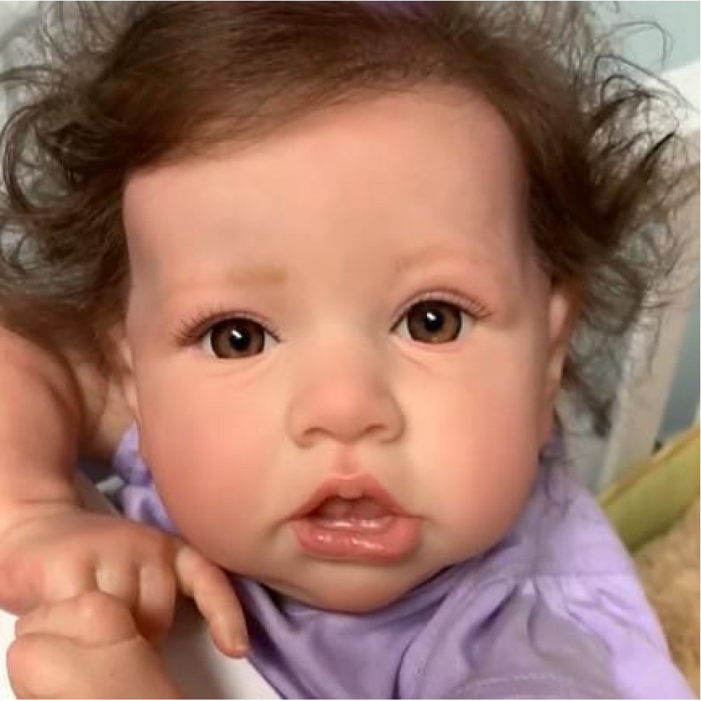 12'' Little Sylvie With Brown Hair And Eyes Reborn Baby Doll Girl, Handmade Huggable Baby Doll Toy