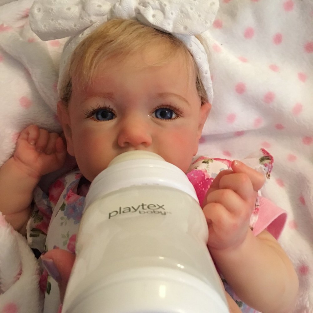 Realistic Saskia is 12'' Long and is made of authentic silicone vinyl, she has the sweetest disposition and a little trouble maker at times. Saskia will come to your home with all the love and affection you want, Holding her is such a joy.. She is weighted and feels like a real baby. I use only the best reborn supplies,making your reborn very realistic.