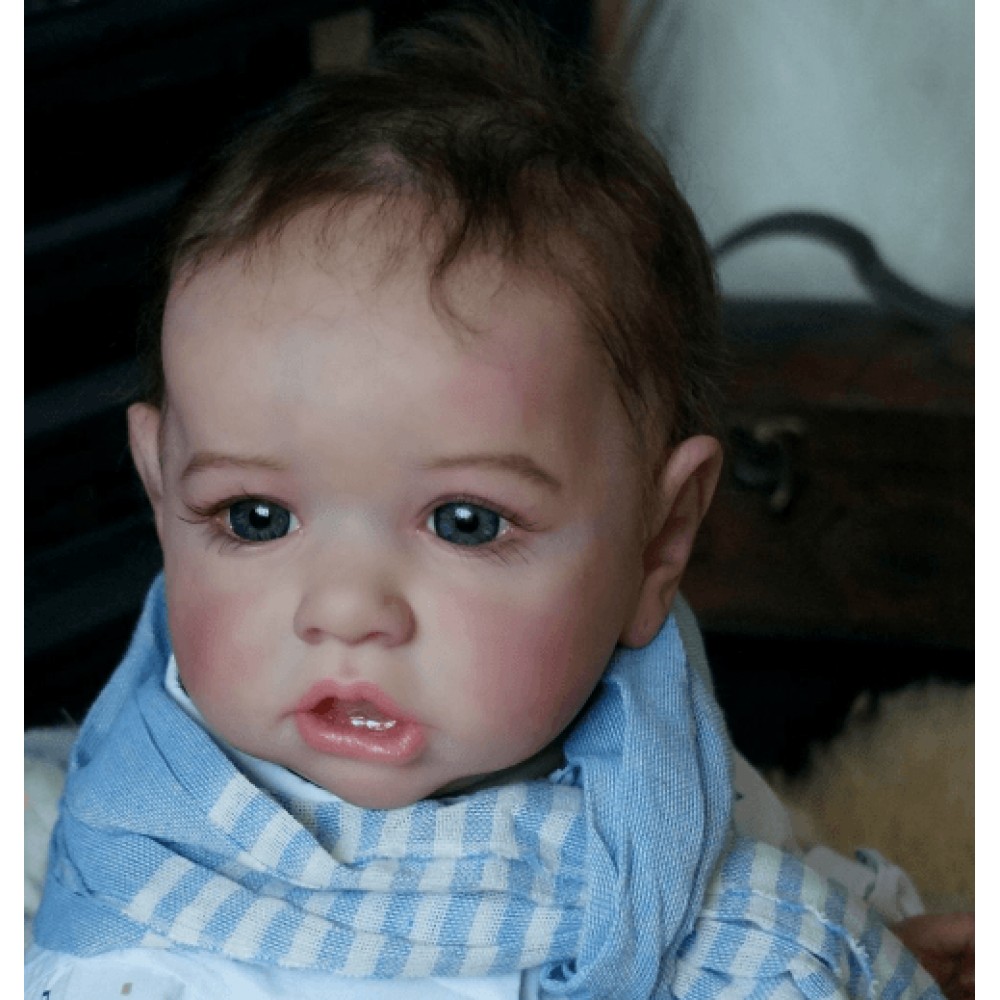 Realistic Saskia is 12'' Long and is made of authentic silicone vinyl, she has the sweetest disposition and a little trouble maker at times. Saskia will come to your home with all the love and affection you want, Holding her is such a joy.. She is weighted and feels like a real baby. I use only the best reborn supplies,making your reborn very realistic.