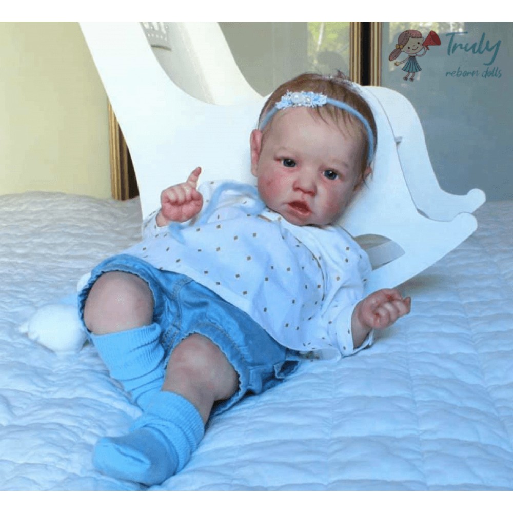Realistic Saskia is 12'' Long and is made of authentic silicone vinyl, she has the sweetest disposition and a little trouble maker at times. Saskia will come to your home with all the love and affection you want, Holding her is such a joy.. She is weighted and feels like a real baby. I use only the best reborn supplies,making your reborn very realistic.