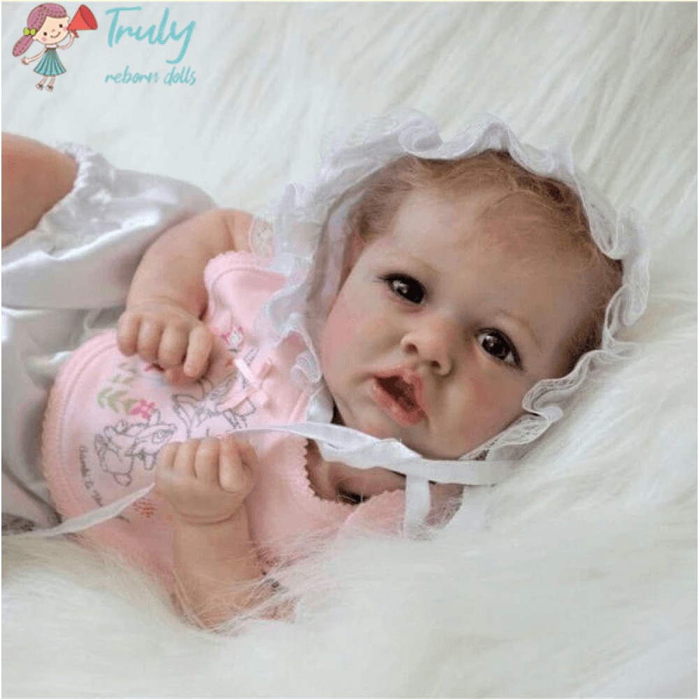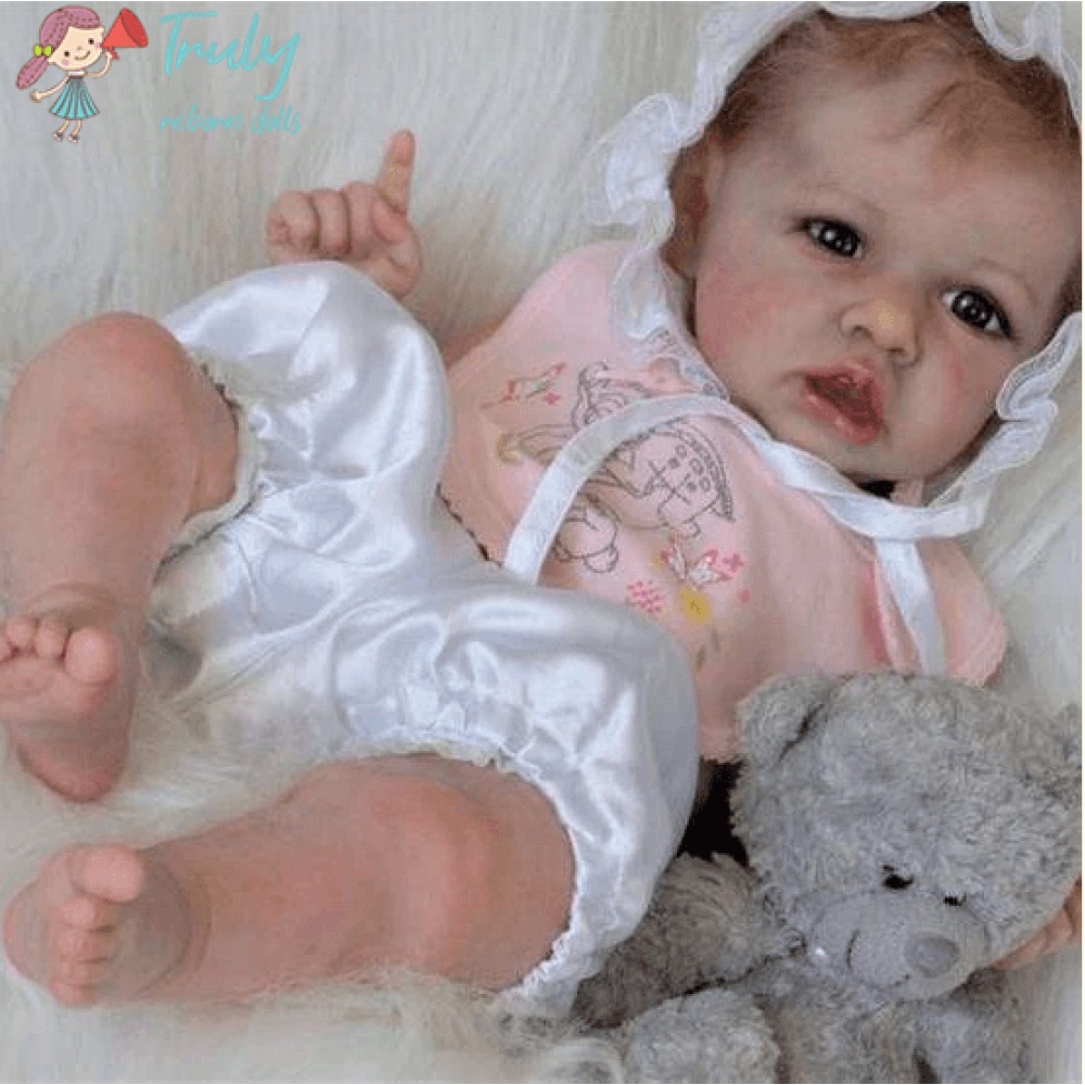 Realistic Saskia is 12'' Long and is made of authentic silicone vinyl, she has the sweetest disposition and a little trouble maker at times. Saskia will come to your home with all the love and affection you want, Holding her is such a joy.. She is weighted and feels like a real baby. I use only the best reborn supplies,making your reborn very realistic.