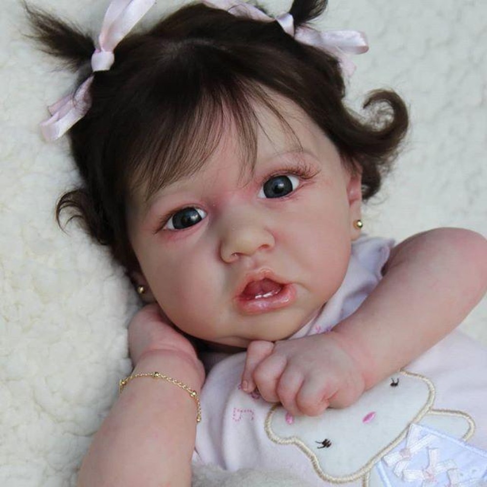 Realistic Saskia is 12'' Long and is made of authentic silicone vinyl, she has the sweetest disposition and a little trouble maker at times. Saskia will come to your home with all the love and affection you want, Holding her is such a joy.. She is weighted and feels like a real baby. I use only the best reborn supplies,making your reborn very realistic.