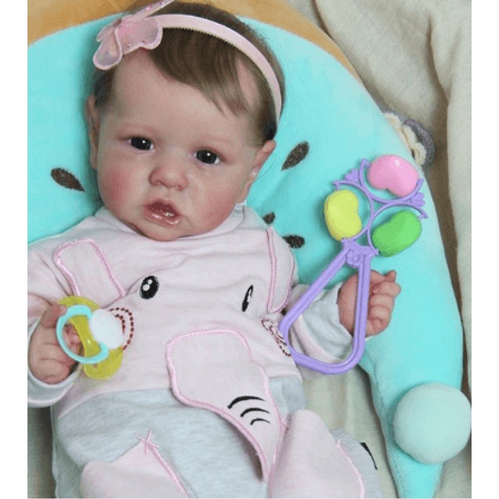 Realistic Saskia is 12'' Long and is made of authentic silicone vinyl, she has the sweetest disposition and a little trouble maker at times. Saskia will come to your home with all the love and affection you want, Holding her is such a joy.. She is weighted and feels like a real baby. I use only the best reborn supplies,making your reborn very realistic.