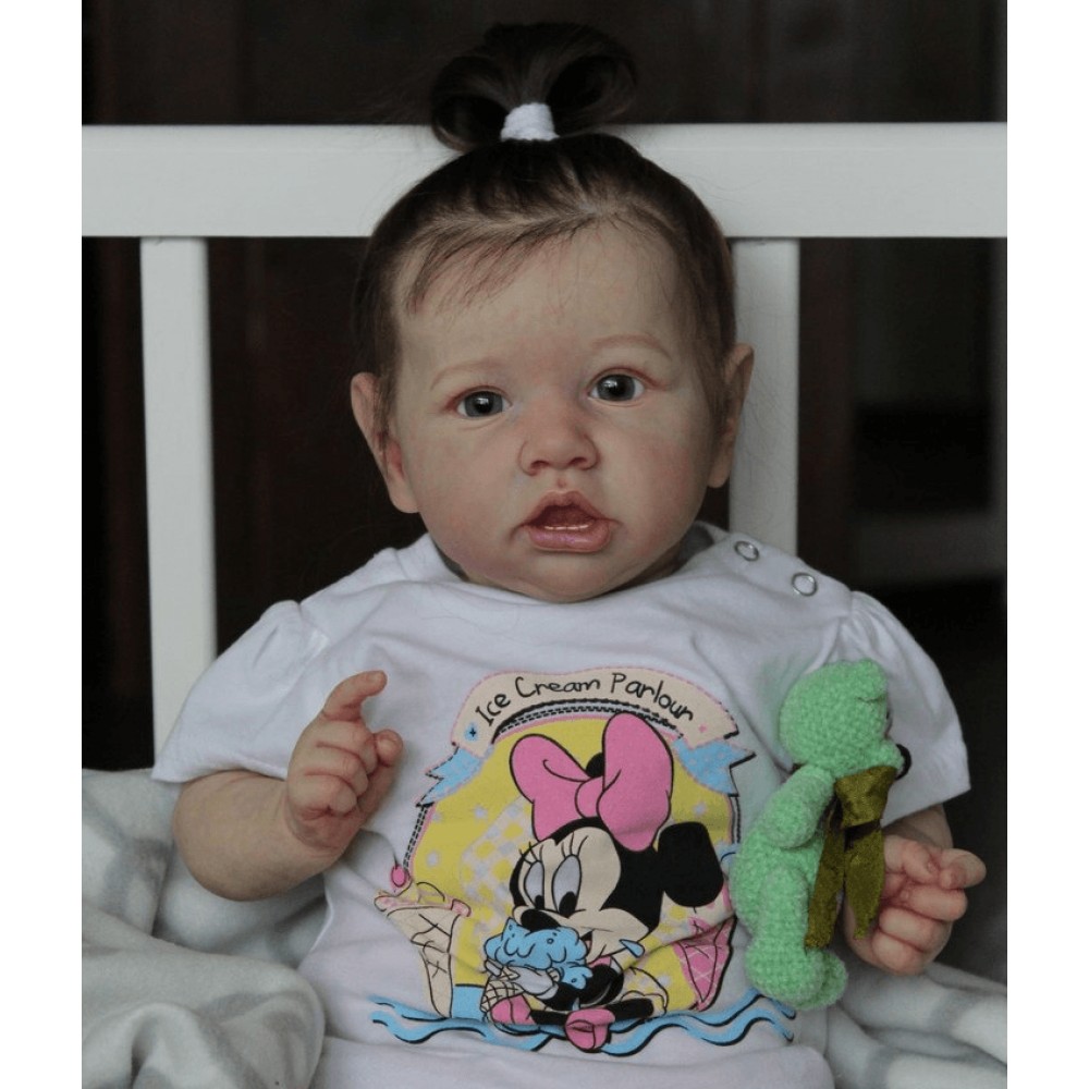 Realistic Saskia is 12'' Long and is made of authentic silicone vinyl, she has the sweetest disposition and a little trouble maker at times. Saskia will come to your home with all the love and affection you want, Holding her is such a joy.. She is weighted and feels like a real baby. I use only the best reborn supplies,making your reborn very realistic.