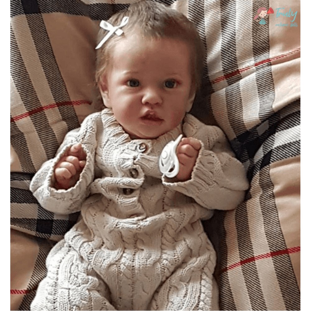 Realistic Saskia is 12'' Long and is made of authentic silicone vinyl, she has the sweetest disposition and a little trouble maker at times. Saskia will come to your home with all the love and affection you want, Holding her is such a joy.. She is weighted and feels like a real baby. I use only the best reborn supplies,making your reborn very realistic.