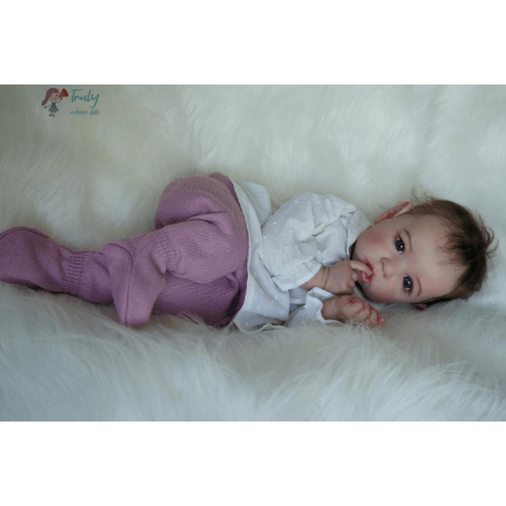 Realistic Saskia is 12'' Long and is made of authentic silicone vinyl, she has the sweetest disposition and a little trouble maker at times. Saskia will come to your home with all the love and affection you want, Holding her is such a joy.. She is weighted and feels like a real baby. I use only the best reborn supplies,making your reborn very realistic.