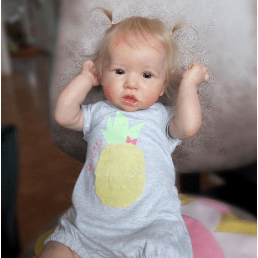Realistic Saskia is 12'' Long and is made of authentic silicone vinyl, she has the sweetest disposition and a little trouble maker at times. Saskia will come to your home with all the love and affection you want, Holding her is such a joy.. She is weighted and feels like a real baby. I use only the best reborn supplies,making your reborn very realistic.
