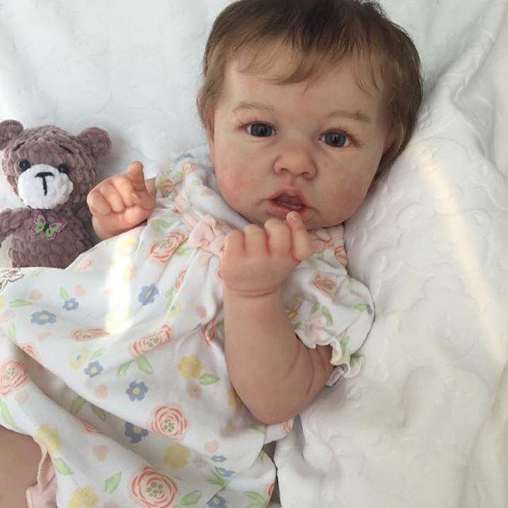 Realistic Saskia is 12'' Long and is made of authentic silicone vinyl, she has the sweetest disposition and a little trouble maker at times. Saskia will come to your home with all the love and affection you want, Holding her is such a joy.. She is weighted and feels like a real baby. I use only the best reborn supplies,making your reborn very realistic.