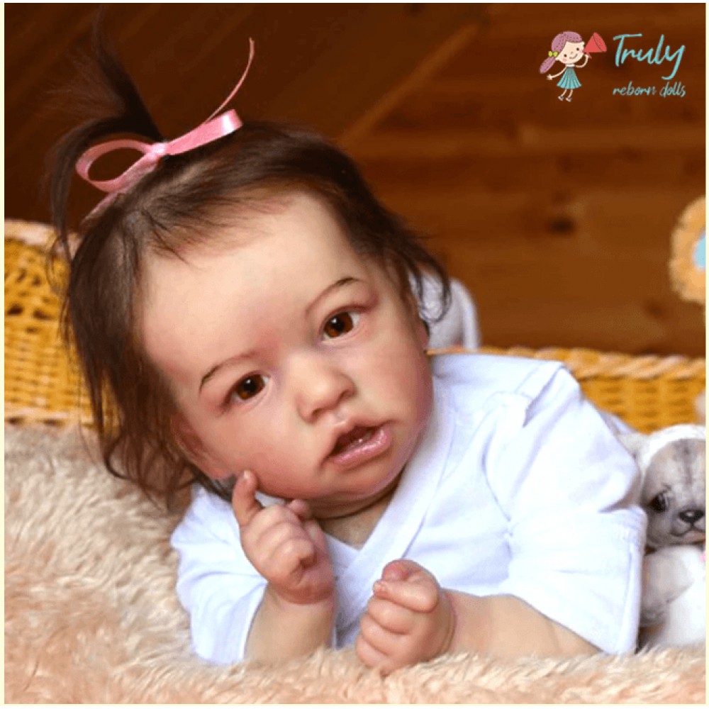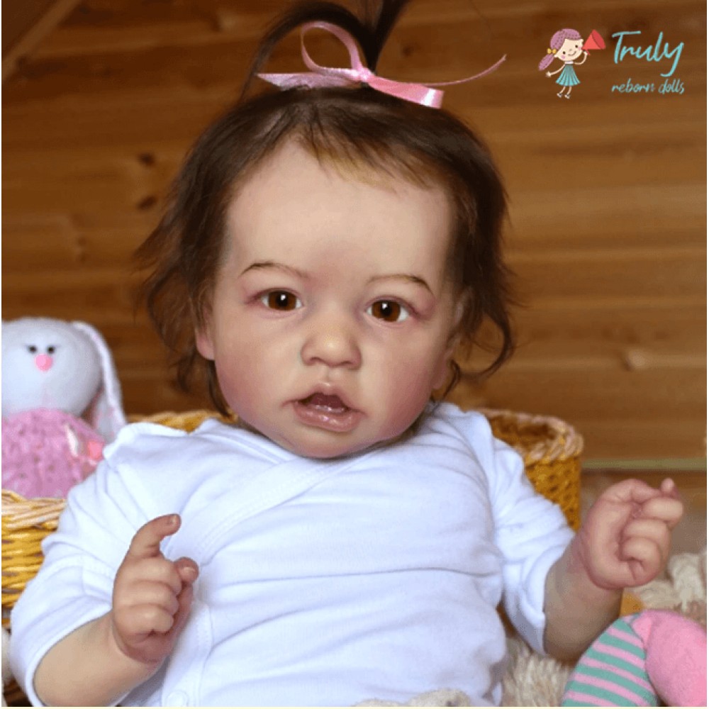 Realistic Saskia is 12'' Long and is made of authentic silicone vinyl, she has the sweetest disposition and a little trouble maker at times. Saskia will come to your home with all the love and affection you want, Holding her is such a joy.. She is weighted and feels like a real baby. I use only the best reborn supplies,making your reborn very realistic.