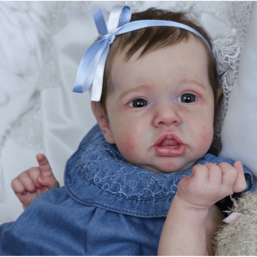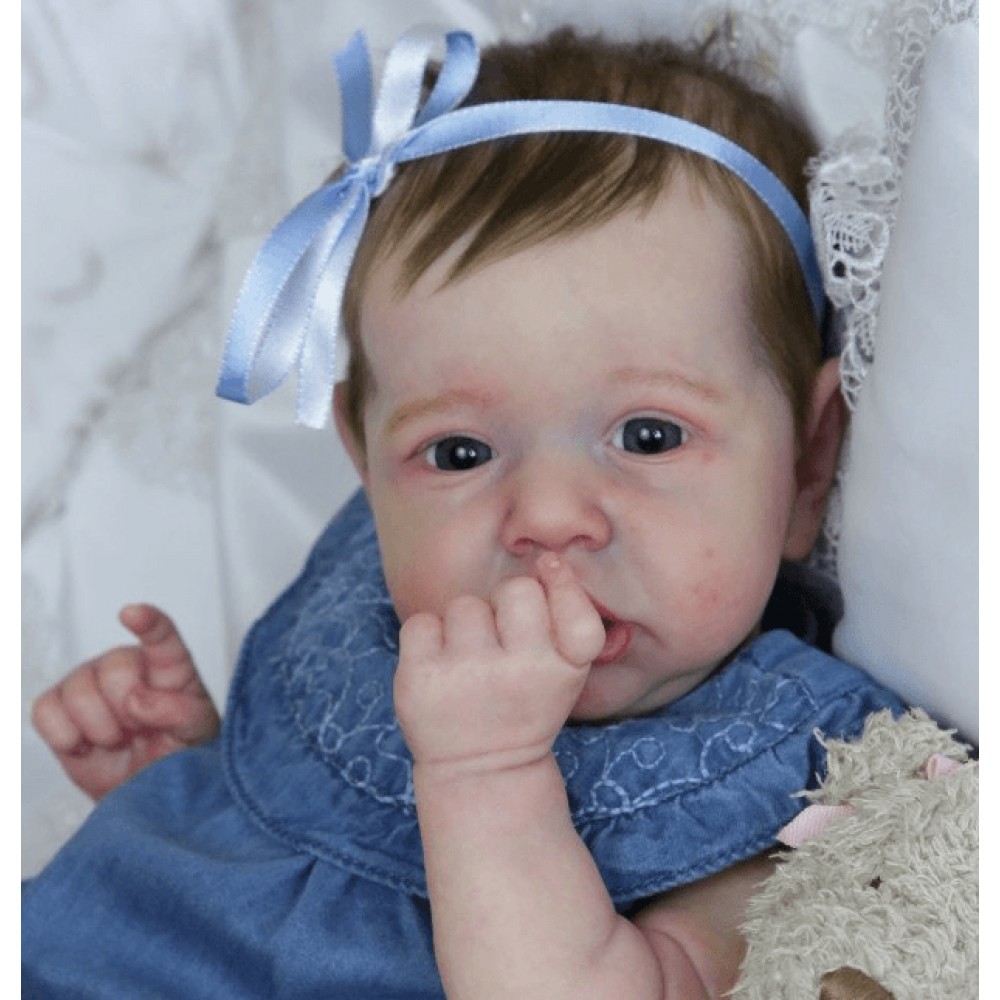 Realistic Saskia is 12'' Long and is made of authentic silicone vinyl, she has the sweetest disposition and a little trouble maker at times. Saskia will come to your home with all the love and affection you want, Holding her is such a joy.. She is weighted and feels like a real baby. I use only the best reborn supplies,making your reborn very realistic.