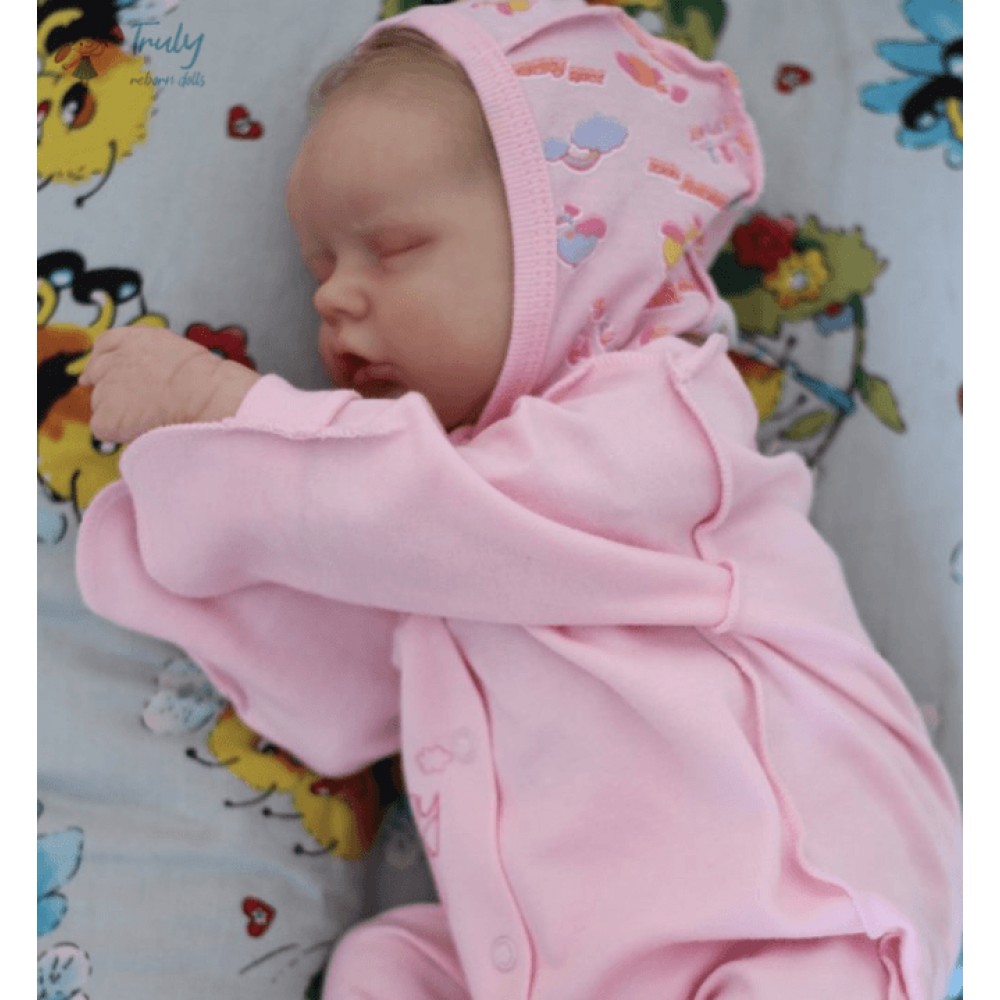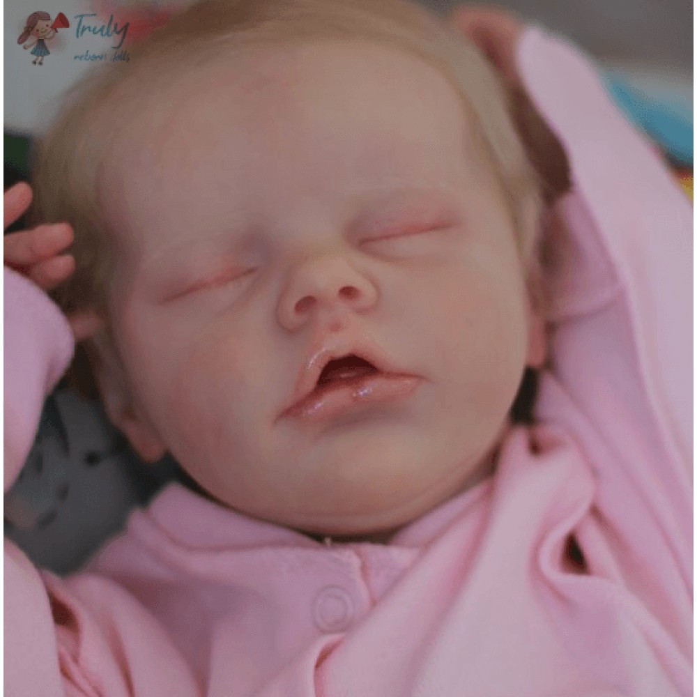 Baby Twin A is lovingly created from the Bountiful Baby Sculpt. A Realborn is a vinyl sculpt created by 3-D scanning a real newborn child, to capture every wrinkle.Twin A is weighted with fine glass beads and stuffed with soft cuddly poly fiber.She is weighted within her head to need support like a real newborn.She feels so good in your arms, just give her a cuddle. She tight closed fists are so newborn!
