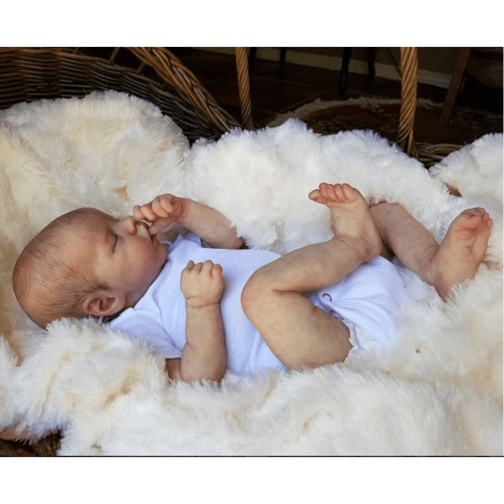 Baby Twin A is lovingly created from the Bountiful Baby Sculpt. A Realborn is a vinyl sculpt created by 3-D scanning a real newborn child, to capture every wrinkle.Twin A is weighted with fine glass beads and stuffed with soft cuddly poly fiber.She is weighted within her head to need support like a real newborn.She feels so good in your arms, just give her a cuddle. She tight closed fists are so newborn!