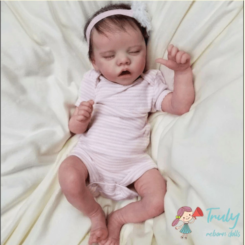 Baby Twin A is lovingly created from the Bountiful Baby Sculpt. A Realborn is a vinyl sculpt created by 3-D scanning a real newborn child, to capture every wrinkle.Twin A is weighted with fine glass beads and stuffed with soft cuddly poly fiber.She is weighted within her head to need support like a real newborn.She feels so good in your arms, just give her a cuddle. She tight closed fists are so newborn!