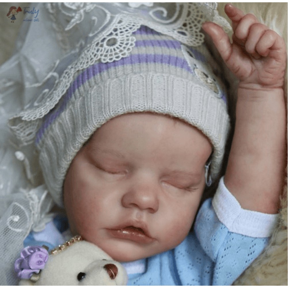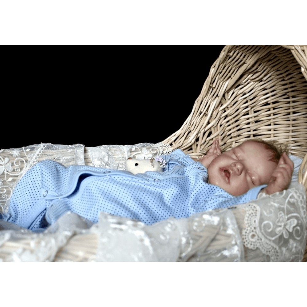 Baby Twin A is lovingly created from the Bountiful Baby Sculpt. A Realborn is a vinyl sculpt created by 3-D scanning a real newborn child, to capture every wrinkle.Twin A is weighted with fine glass beads and stuffed with soft cuddly poly fiber.She is weighted within her head to need support like a real newborn.She feels so good in your arms, just give her a cuddle. She tight closed fists are so newborn!